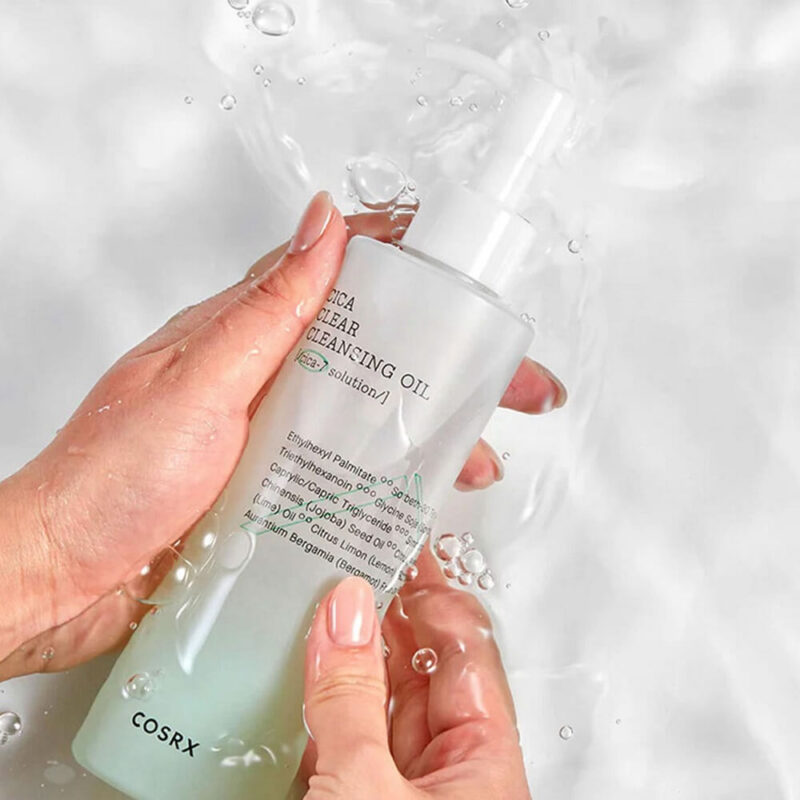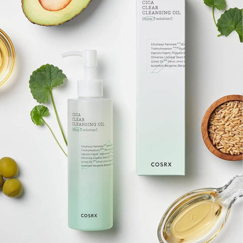 Pure Fit Cica Clear Cleansing Oil از COSRX یک روغن شستشوی سبک و «واتری» است که برای پاک کردن آرایش مقاوم، آلودگیها و ذرات معلق محیطی طراحی شده است. این محصول با بهرهگیری از CICA-7 Complex (ترکیبی از عصارههای گیاهی بابونه، Centella asiatica و غیره) علاوه بر پاککردن، خاصیت التیامبخش و آرامبخش برای پوستهای حساس دارد.